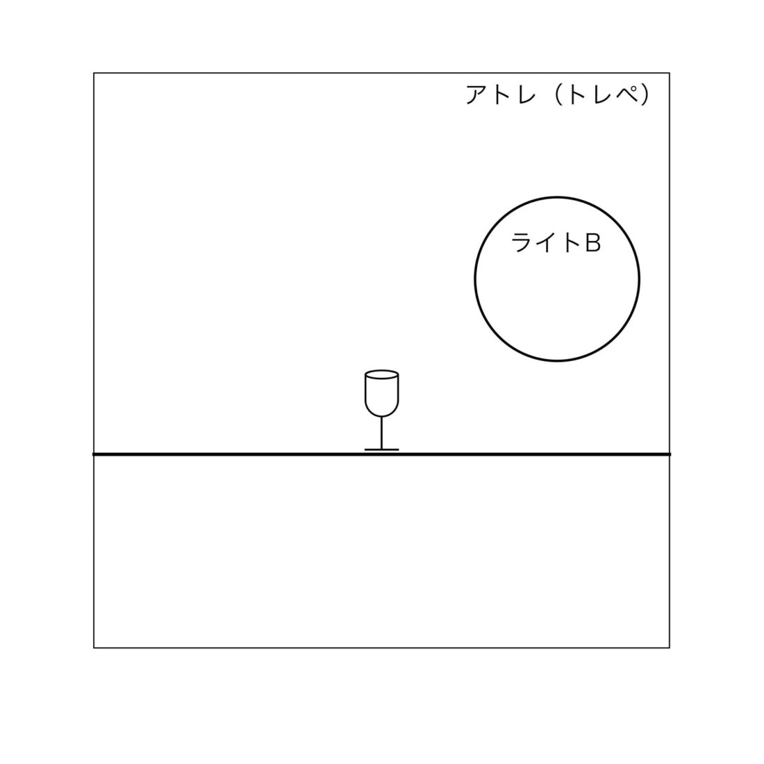 イラストでは真横にライトがある様に見えますが実際にはグラスとカメラのライン45°の位置 アトレ越しに置きました。