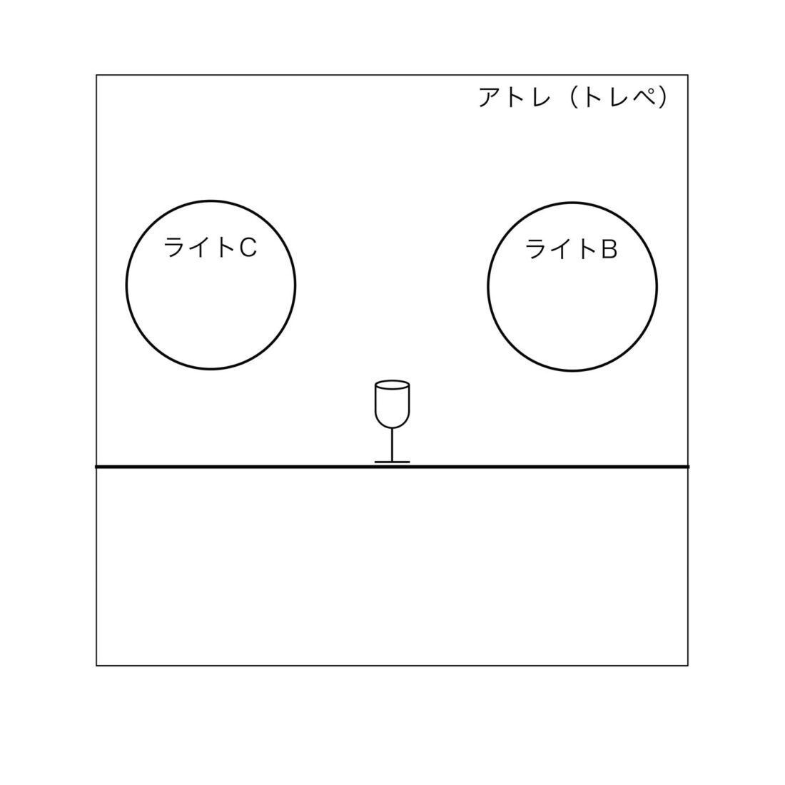 ライトAとライトBを下に下げてグラスの高さと同じぐらいにしてみましょう。