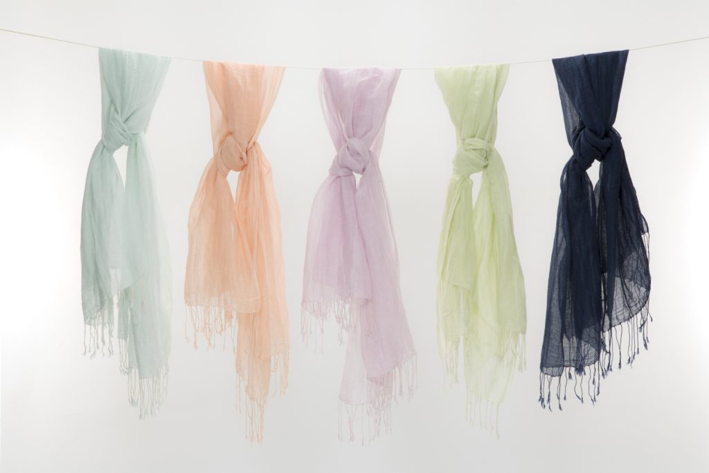 先月クラウドファウンディングに掲載するストールの撮影を行いました。この商品は染めを日本で行いミネラル混合体であるプラウシオンを配合した一般医療機器のストールだそうです。
