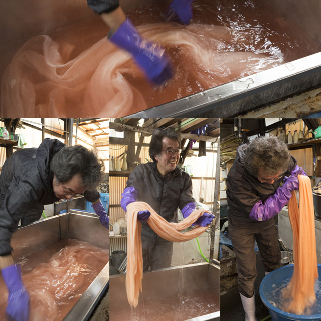 撮影はスタジオでのモデル撮影と商品撮影 それと栃木県の桐生市まで出張して 工場で染めている職人さんの撮影をいたしました。