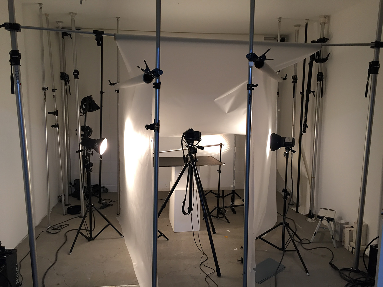 手のひらに乗るほどの商品でもきれいに丁寧に撮影するにはこんなに大がかりなライトを組まなければなりません。