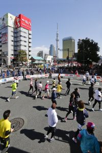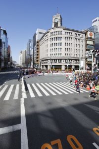 撮影のデザイナーからの要望は東京の街とランナーが対等に見られる景色とのリクエスト。