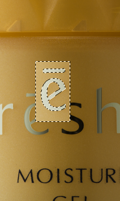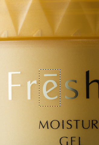前回の続きです。化粧品の真正面にある箔押し金のロゴをきれいに処理するか?です。